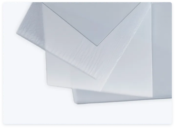 Листы полистирола могут иметь как гладкую, так и рифленую поверхность с такими типами рифлений, как «колотый лед», «призма», «аква» и др. Листы с тиснение нашли широкое применение в светотехнике. Каждое тиснение, по-своему преломляя световые потоки, придает рассеивателю светильника свой особый индивидуальный рисунок, предоставляя неограниченные возможности в создании интересных дизайнерских решений в создании интерьеров с подсветкой.